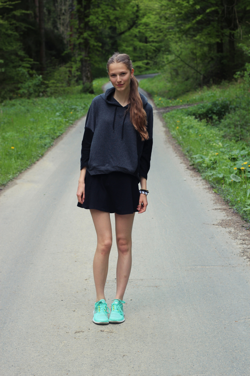 [sukně-h&m, mikina-zara, boty-nike free run]